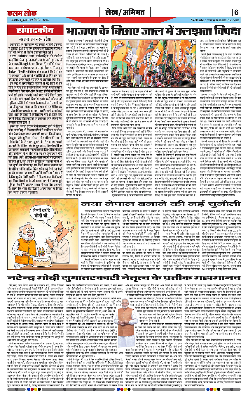 Kalam Lok is a Hindi e-paper newspaper that provides readers with news, analysis, and local updates. Language Hindi, Electronic Paper (Epaper), accessible online. Covers a wide range of topics including. Breaking News, In-depth Analysis, Local Updates, Politics, Business, Sports, Entertainment. Daily editions are available online. You can typically browse through pages, zoom in on content, and navigate between articles. The e-paper maintains an archive of past editions, allowing readers to access previous news.