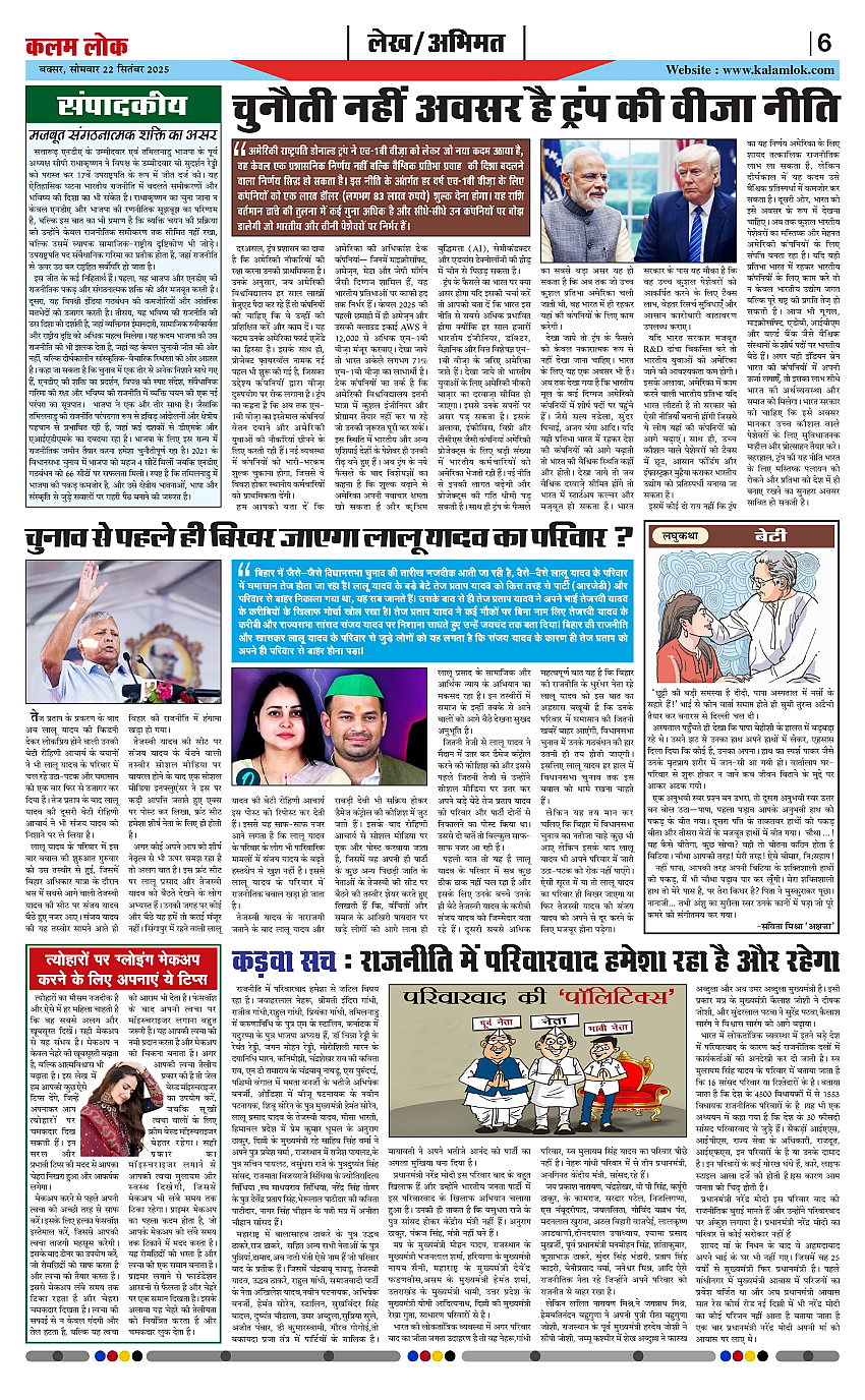 Kalam Lok is a Hindi e-paper newspaper that provides readers with news, analysis, and local updates. Language Hindi, Electronic Paper (Epaper), accessible online. Covers a wide range of topics including. Breaking News, In-depth Analysis, Local Updates, Politics, Business, Sports, Entertainment. Daily editions are available online. You can typically browse through pages, zoom in on content, and navigate between articles. The e-paper maintains an archive of past editions, allowing readers to access previous news.