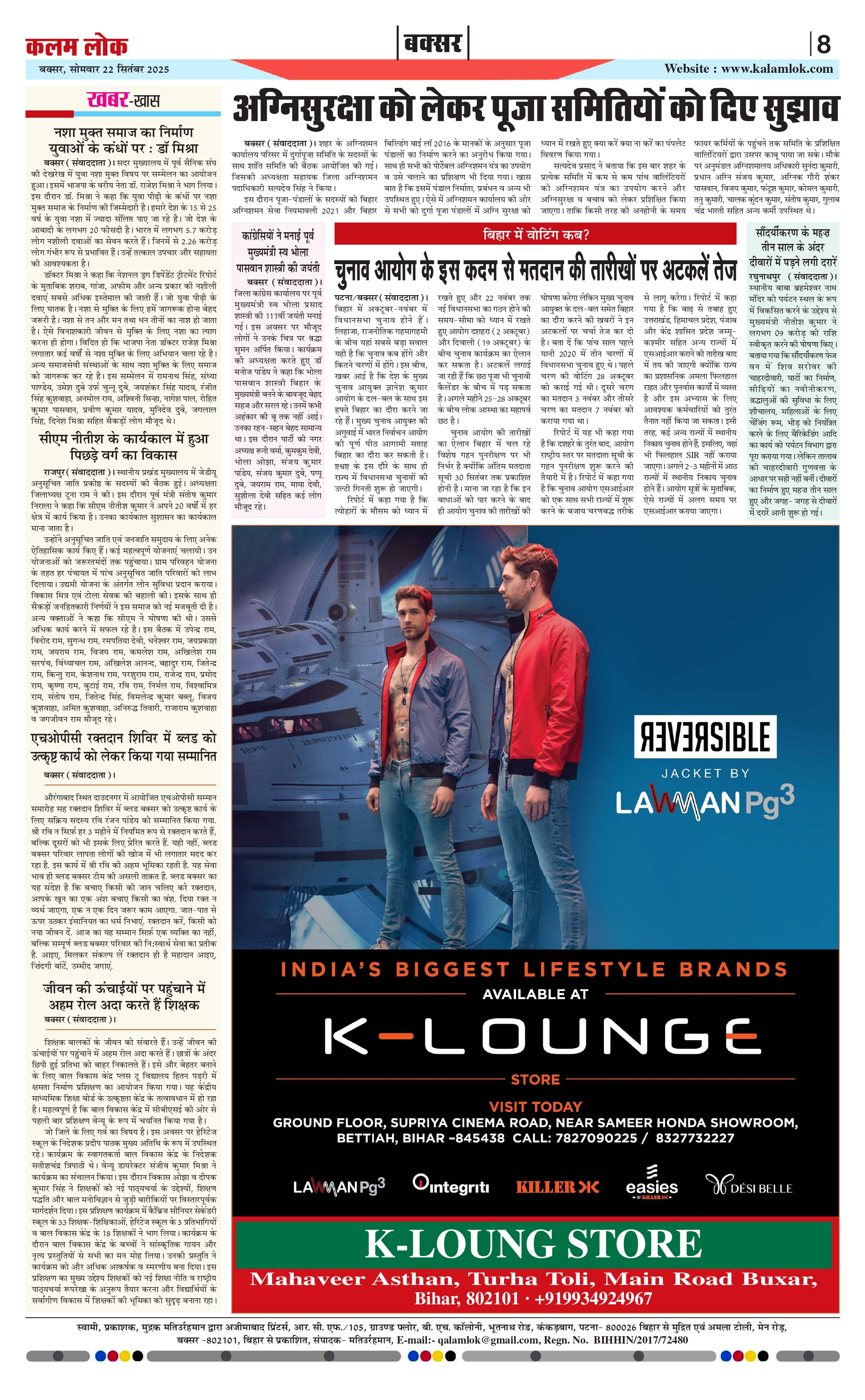 Kalam Lok is a Hindi e-paper newspaper that provides readers with news, analysis, and local updates. Language Hindi, Electronic Paper (Epaper), accessible online. Covers a wide range of topics including. Breaking News, In-depth Analysis, Local Updates, Politics, Business, Sports, Entertainment. Daily editions are available online. You can typically browse through pages, zoom in on content, and navigate between articles. The e-paper maintains an archive of past editions, allowing readers to access previous news.