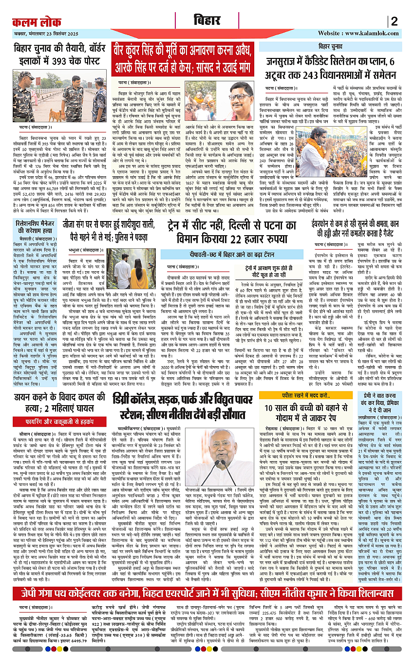 Kalam Lok is a Hindi e-paper newspaper that provides readers with news, analysis, and local updates. Language Hindi, Electronic Paper (Epaper), accessible online. Covers a wide range of topics including. Breaking News, In-depth Analysis, Local Updates, Politics, Business, Sports, Entertainment. Daily editions are available online. You can typically browse through pages, zoom in on content, and navigate between articles.