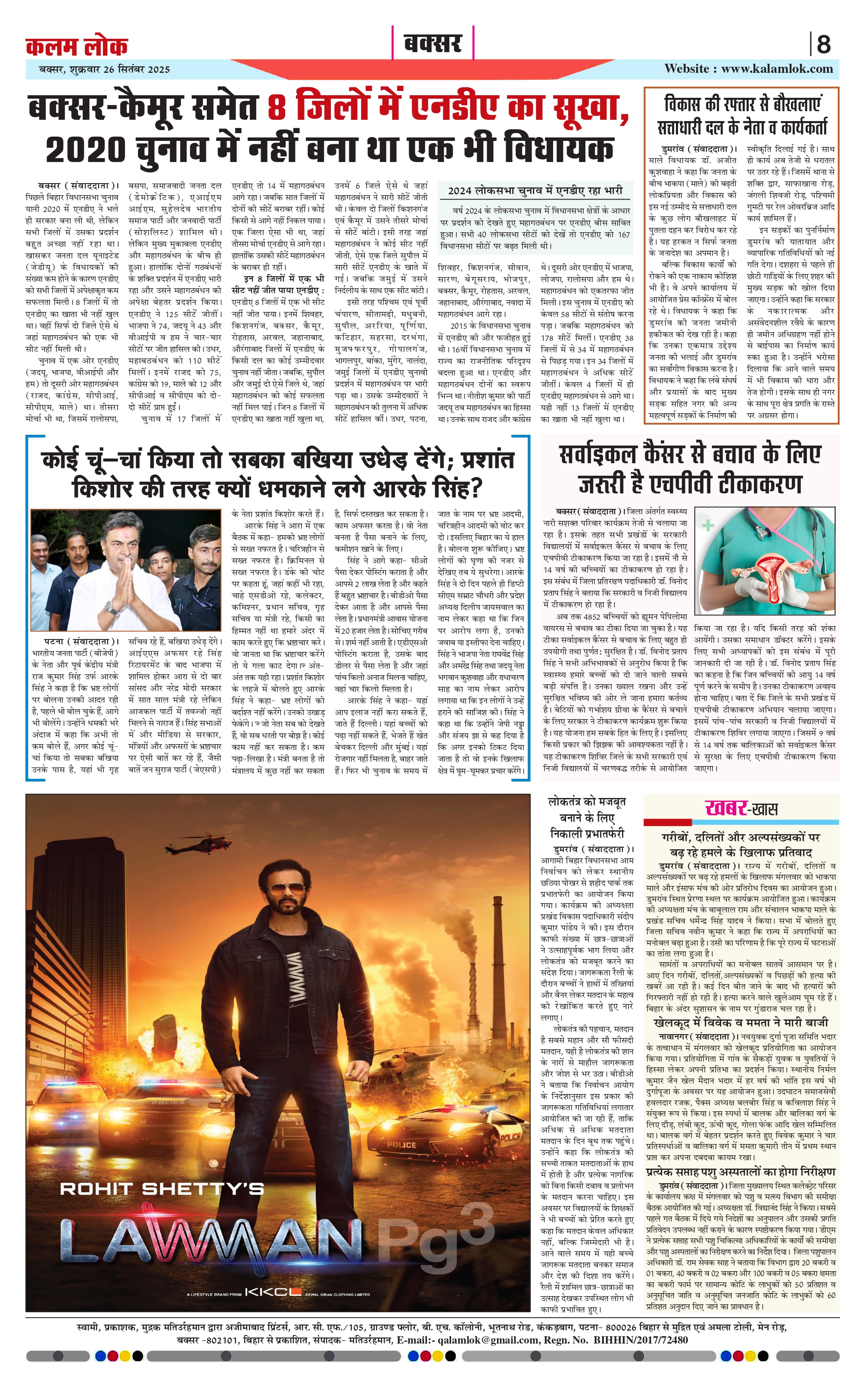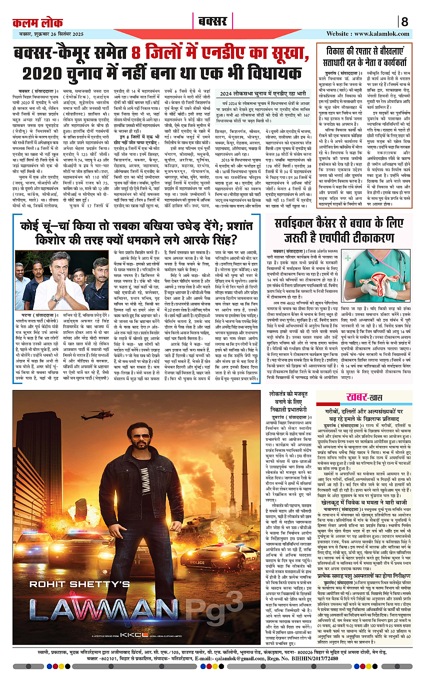 Kalam Lok is a Hindi e-paper newspaper that provides readers with news, analysis, and local updates. Language Hindi, Electronic Paper (Epaper), accessible online. Covers a wide range of topics including. Breaking News, In-depth Analysis, Local Updates, Politics, Business, Sports, Entertainment. Daily editions are available online.