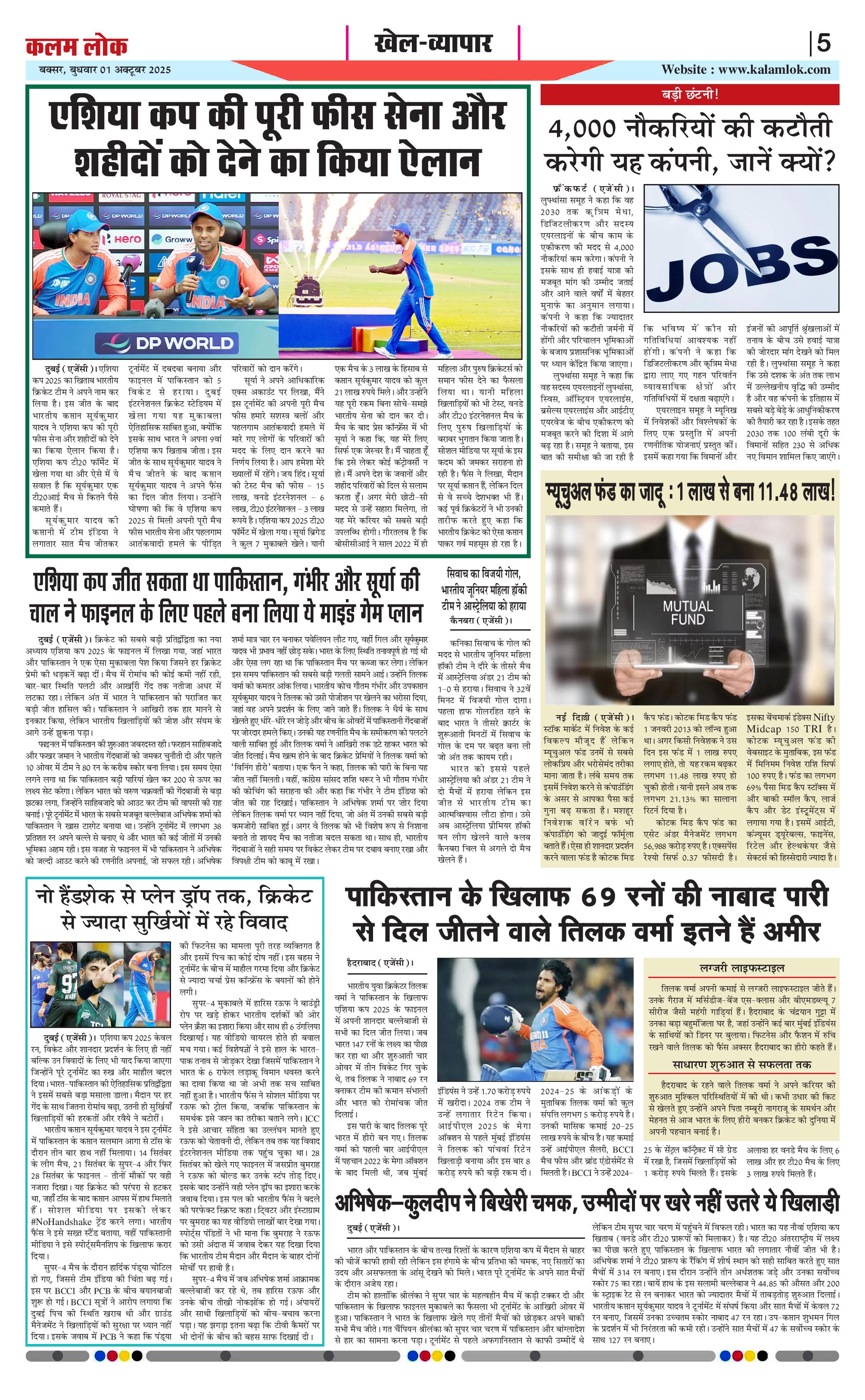 Kalam Lok is a Hindi e-paper newspaper that provides readers with news, analysis, and local updates. Language Hindi, Electronic Paper (Epaper), accessible online. Covers a wide range of topics including. Breaking News, In-depth Analysis, Local Updates, Politics, Business, Sports, Entertainment. Daily editions are available online. You can typically browse through pages, zoom in on content, and navigate between articles.