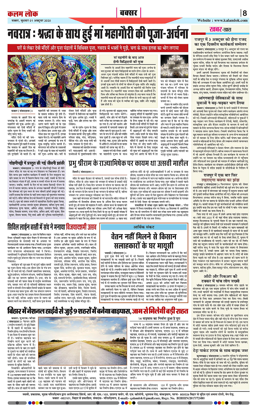 Kalam Lok is a Hindi e-paper newspaper that provides readers with news, analysis, and local updates. Language Hindi, Electronic Paper (Epaper), accessible online. Covers a wide range of topics including. Breaking News, In-depth Analysis, Local Updates, Politics, Business, Sports, Entertainment. Daily editions are available online. You can typically browse through pages, zoom in on content, and navigate between articles.