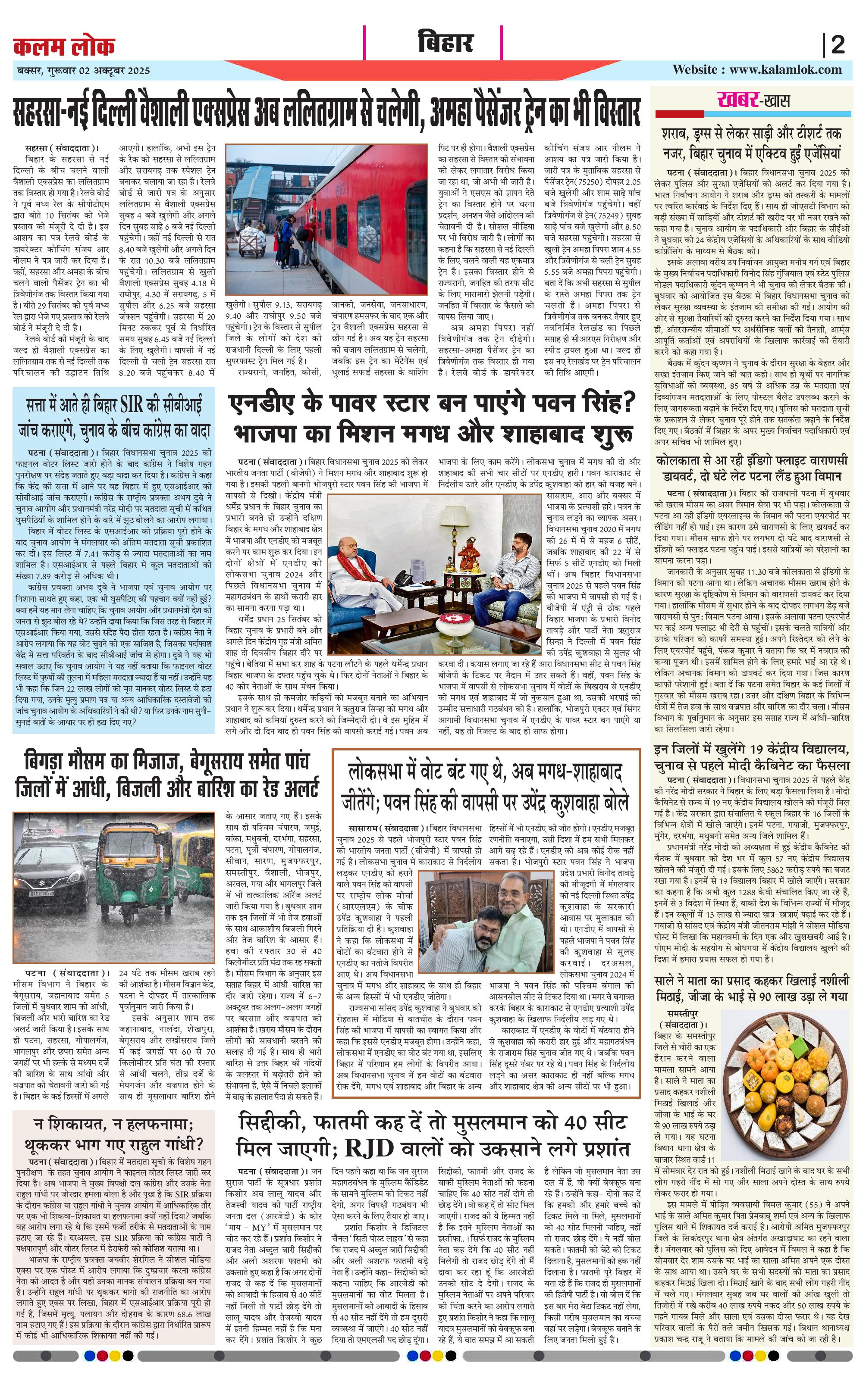 Kalam Lok is a Hindi e-paper newspaper that provides readers with news, analysis, and local updates. Language Hindi, Electronic Paper (Epaper), accessible online. Covers a wide range of topics including. Breaking News, In-depth Analysis, Local Updates, Politics, Business, Sports, Entertainment. Daily editions are available online. You can typically browse through pages, zoom in on content, and navigate between articles.