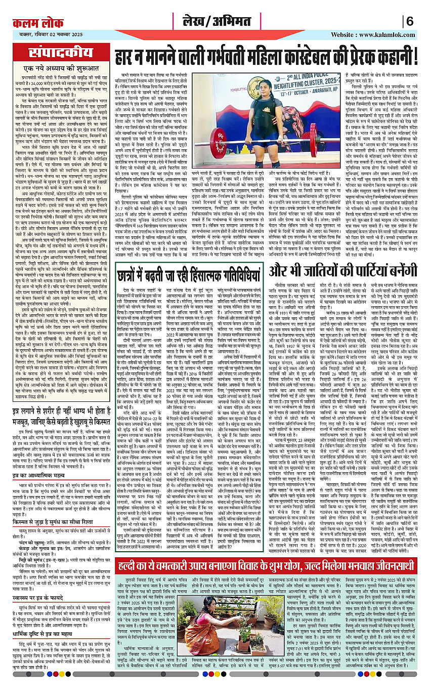 Kalam Lok is a Hindi e-paper newspaper that provides readers with news, analysis, and local updates. Language Hindi, Electronic Paper (Epaper), accessible online. Covers a wide range of topics including. Breaking News, In-depth Analysis, Local Updates, Politics, Business, Sports, Entertainment. Daily editions are available online. You can typically browse through pages, zoom in on content, and navigate between articles.
