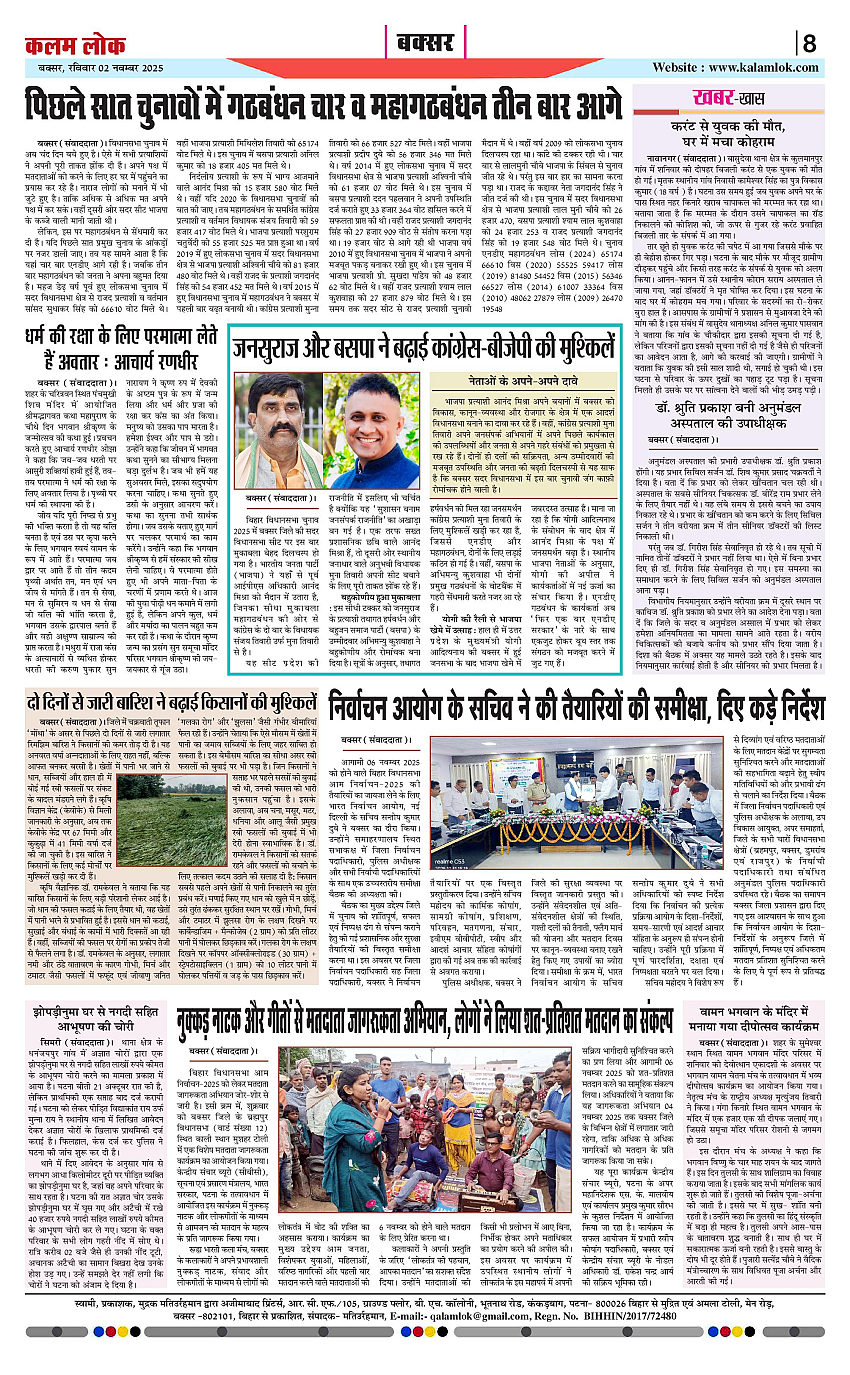 Kalam Lok is a Hindi e-paper newspaper that provides readers with news, analysis, and local updates. Language Hindi, Electronic Paper (Epaper), accessible online. Covers a wide range of topics including. Breaking News, In-depth Analysis, Local Updates, Politics, Business, Sports, Entertainment. Daily editions are available online. You can typically browse through pages, zoom in on content, and navigate between articles.