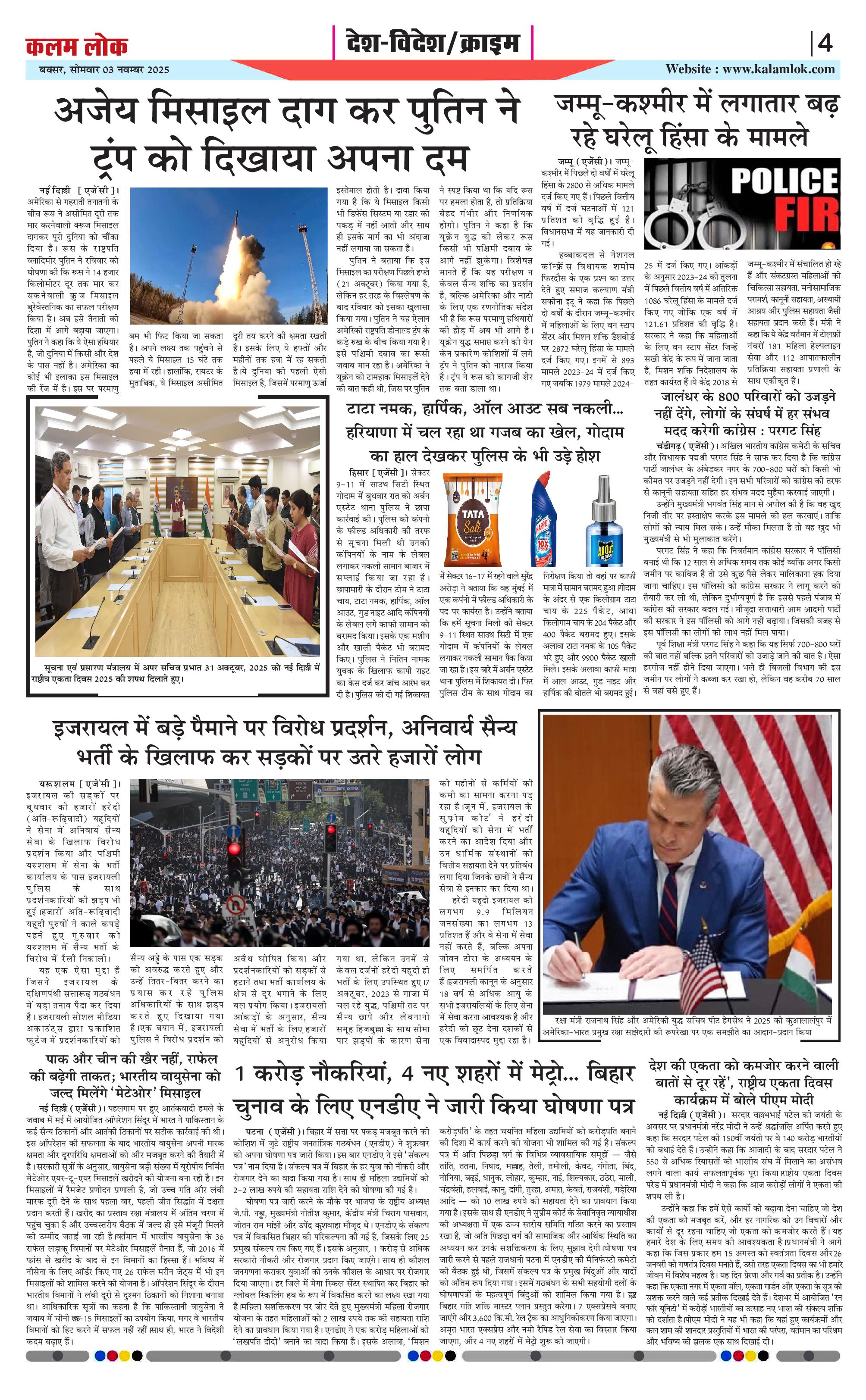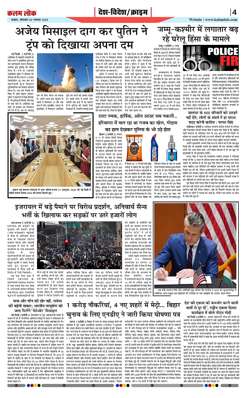 Kalam Lok is a Hindi e-paper newspaper that provides readers with news, analysis, and local updates. Language Hindi, Electronic Paper (Epaper), accessible online. Covers a wide range of topics including. Breaking News, In-depth Analysis, Local Updates, Politics, Business, Sports, Entertainment. Daily editions are available online. You can typically browse through pages, zoom in on content, and navigate between articles.