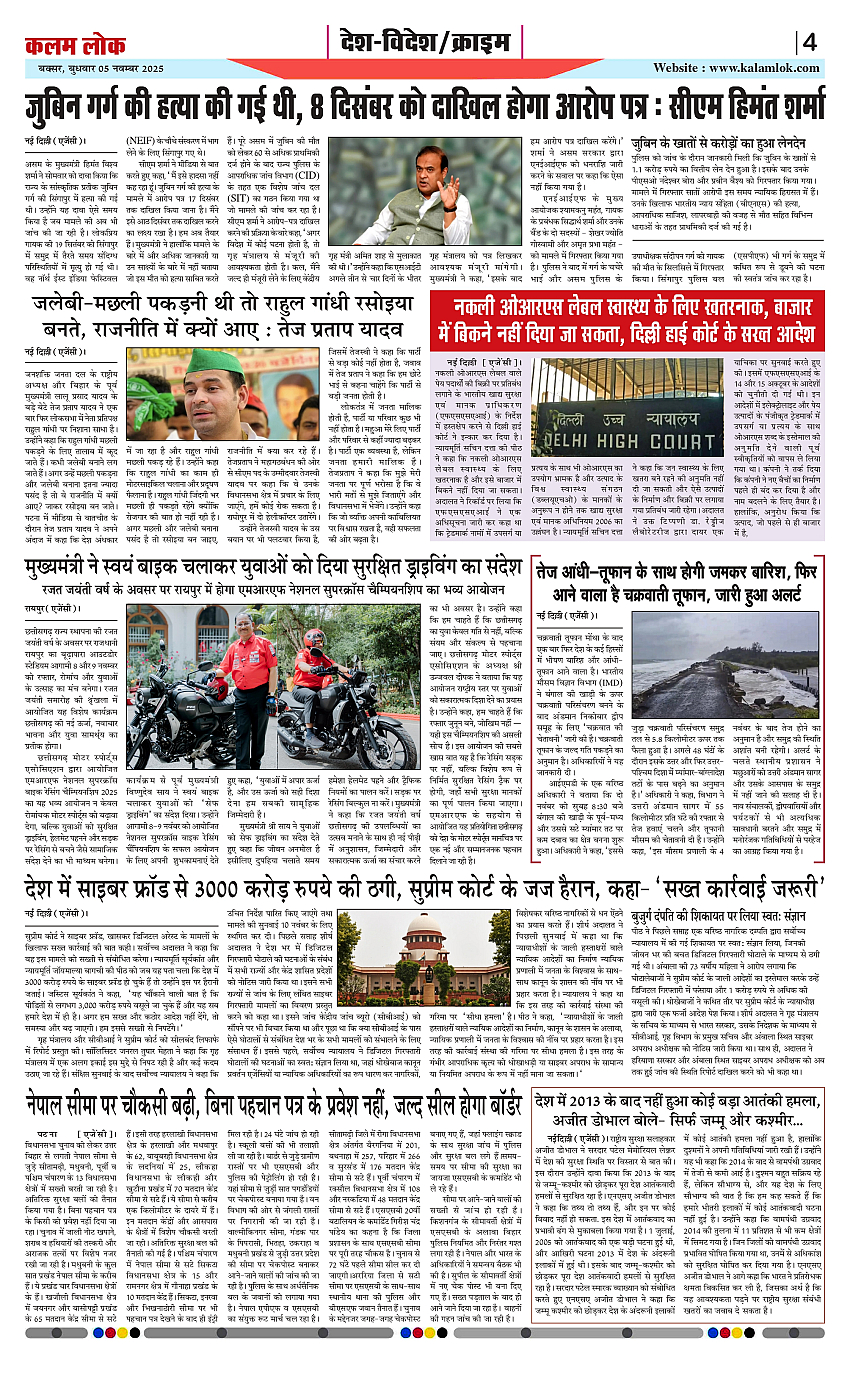 Kalam Lok is a Hindi e-paper newspaper that provides readers with news, analysis, and local updates. Language Hindi, Electronic Paper (Epaper), accessible online. Covers a wide range of topics including. Breaking News, In-depth Analysis, Local Updates, Politics, Business, Sports, Entertainment. Daily editions are available online.