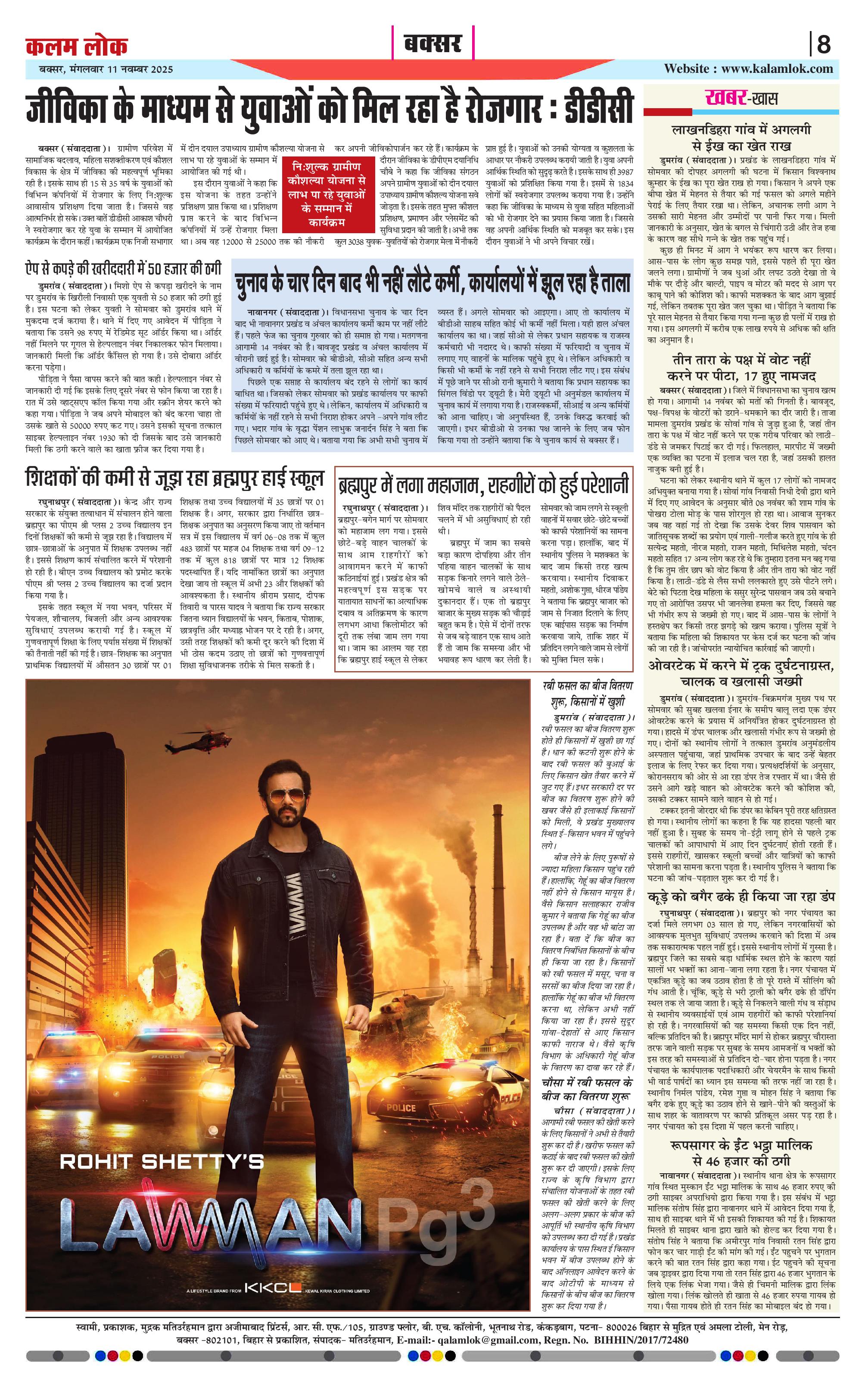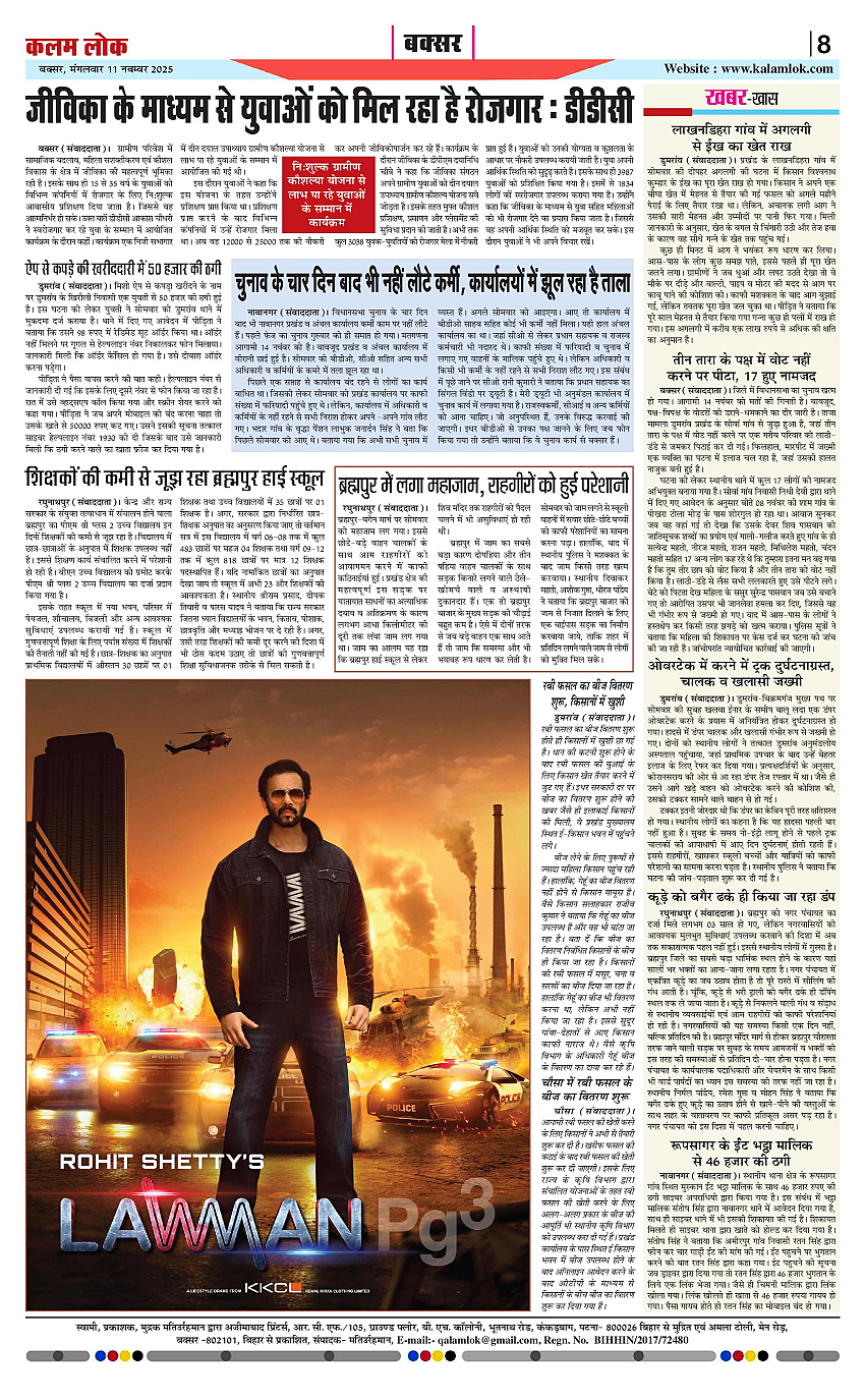 Kalam Lok is a Hindi e-paper newspaper that provides readers with news, analysis, and local updates. Language Hindi, Electronic Paper (Epaper), accessible online. Covers a wide range of topics including. Breaking News, In-depth Analysis, Local Updates, Politics, Business, Sports, Entertainment. Daily editions are available online.